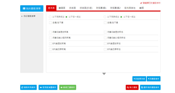 利用我們簡單好用又快速的選股功能,你可以依據你的喜好,打造專屬於你的選股條件。從此以後,不用打探內線,不再道聽塗說,你自己就是一流的選股達人。